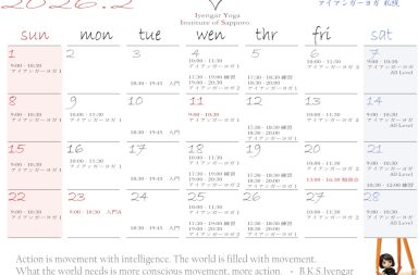 2月のレッスンスケジュールになります。お休みはありませんが、祝祭日はレッスン開始時間が早くなります。ご確認の上、参加予約して下さい。PDF → クリック …